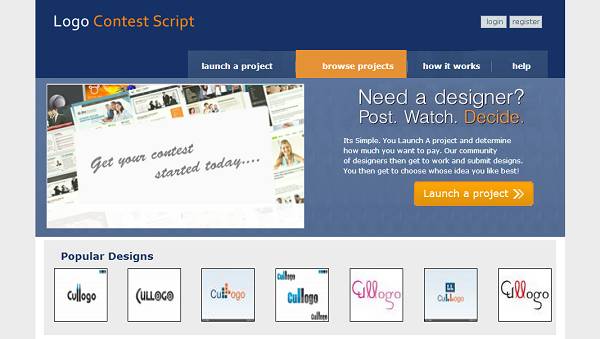 Seabird Scripts presents a professional clone of the popular logo contest website 99Designs. You can have your own fully functional clone up and running in a matter of minutes. You can create categories, charge a predetermined fee for listings and additional features, and much more.