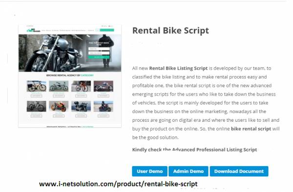 The online industry is booming day to day for all the business and the business owners are also earning high profit from the business. I-netsolution introduced online Bike Rental Script which helps the offline bike business people into online for the bike rental process. This Script is the perfect classified listing for all kinds of two wheelers and motorcycles in a rental process. The user can login with valid username and password and after the user can search with location, and bike categories. The process of finding bike for the rental is very easy in our Bike Rental Scheduling Script. The popular bike categories of the script are chopper, sports bike, cruiser bike, touring bike, road bicycle, and more on. The user can easily find the best rental agency for the rental process. This Bike Showroom PHP Script is not only for the bike rental and it can be customizable as per the business goals and requirements. Major advantages of the script are SEO friendly and Mobile responsive. Due to these both features, the site will come top of the search engine and visible to all the devices from mobile to desktop.
