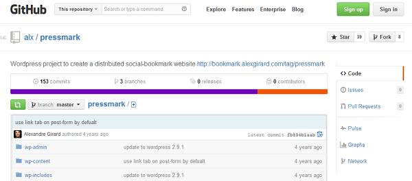Pressmark with a Wordpress installation with all you need to start a social bookmarking website (like del.icio.us, sabros.us, …).