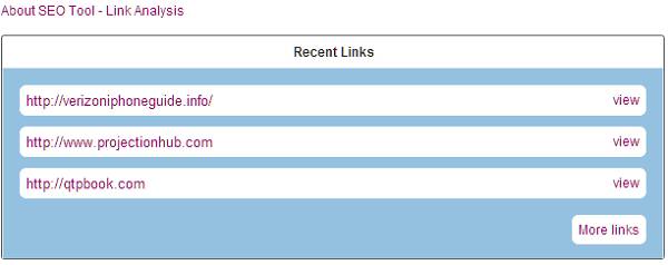 Displaying recent three link analysis list in home page. Implemented the saved results concept. Displaying all inbound links with neat table format while processing links. Added more styles/look and feel to all pages. All Inbound Links of submitted link. PageRank of each Inbound link. Anchor Text of each Inbound link. Link Type (whether the Inbound link is dofollow or nofollow) OutBound links Count PDF report includding pagerank, Anchor Text, LinkType, OutBound links count. CSV report including pagerank, Anchor Text, LinkType, OutBound links count.